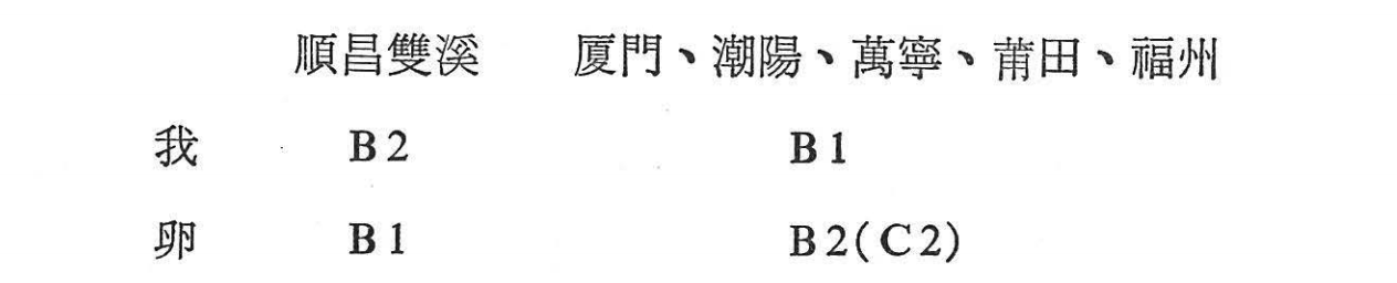 可見閩東、閩南、瓊文、莆仙的分化,是在這一波的影響之後,所以才有一致的表現。順昌在福建西北,因此不與南部沿海的閩語同變化。