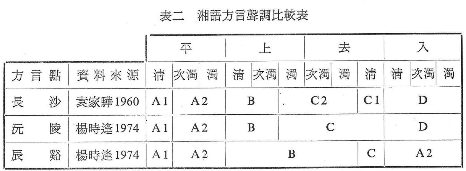 3. 其次我們觀察湘語。就上去聲的關係而言,湘語方言有表二所列的三種型態。