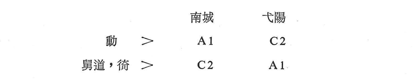 婺源與休寜海陽鎮(平田昌司1982)分陰、陽上,而次濁上聲字部分入陰上、部分入陽上。我想這可以用北方方言的次濁上視同清上與南方方言次濁上視同濁上這兩種不同音韻結構類型在這兩處的交互影響來解釋。這種情形,我們在吴語和赣語中也曾見到過。至於江西德興與浮梁江村(顔森1986)的官話型濁上歸去,則表現了更快的向官話同化的步調。