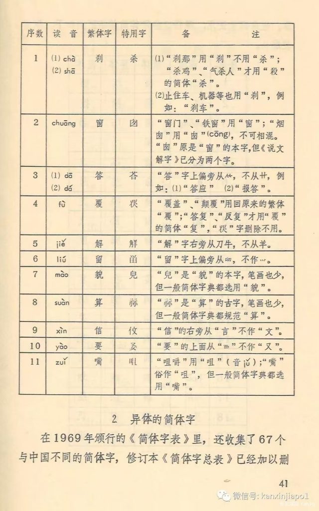 海陬寒儒:新加坡1969《簡體字表》簡體字之與中國簡化字不同者